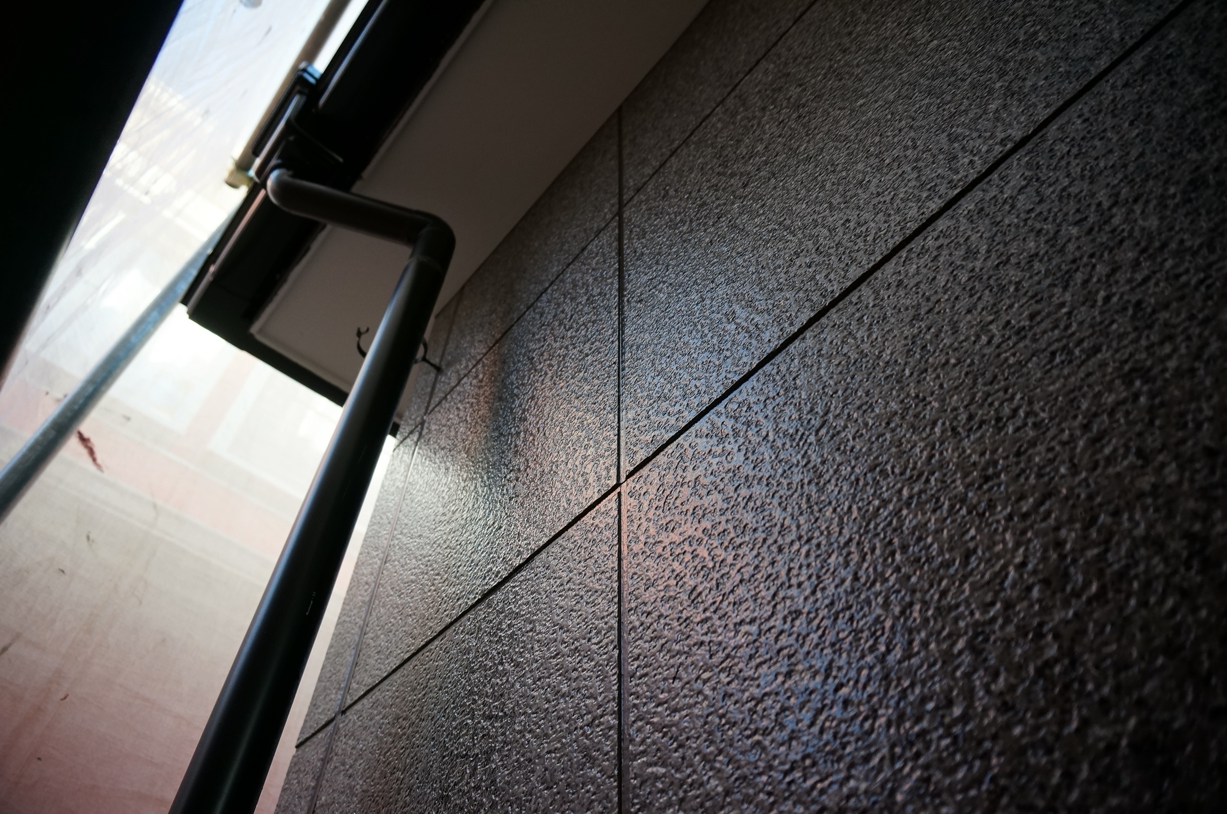 日の当たらない西側の壁面ですが、日陰でも艶が出ているのが良く分かりますね。