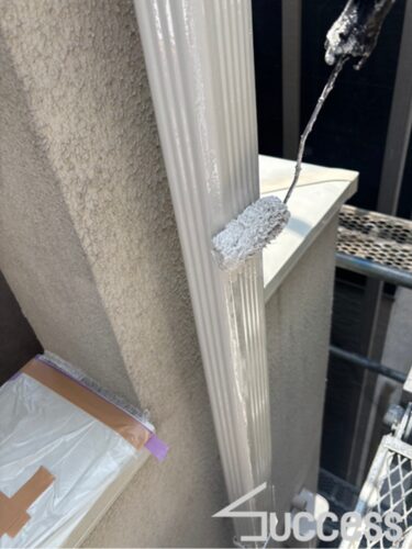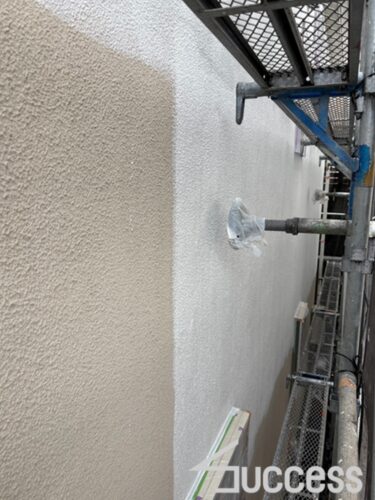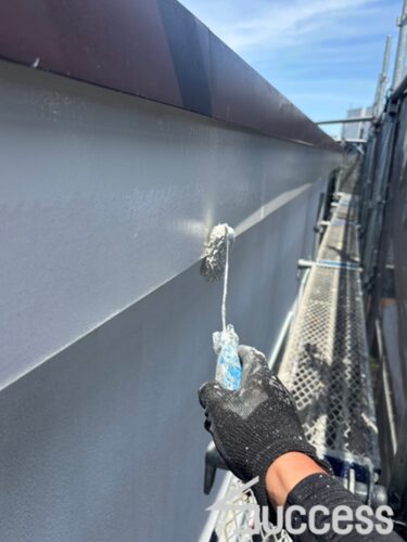 高圧洗浄し、亀裂箇所は修繕してから塗装します。