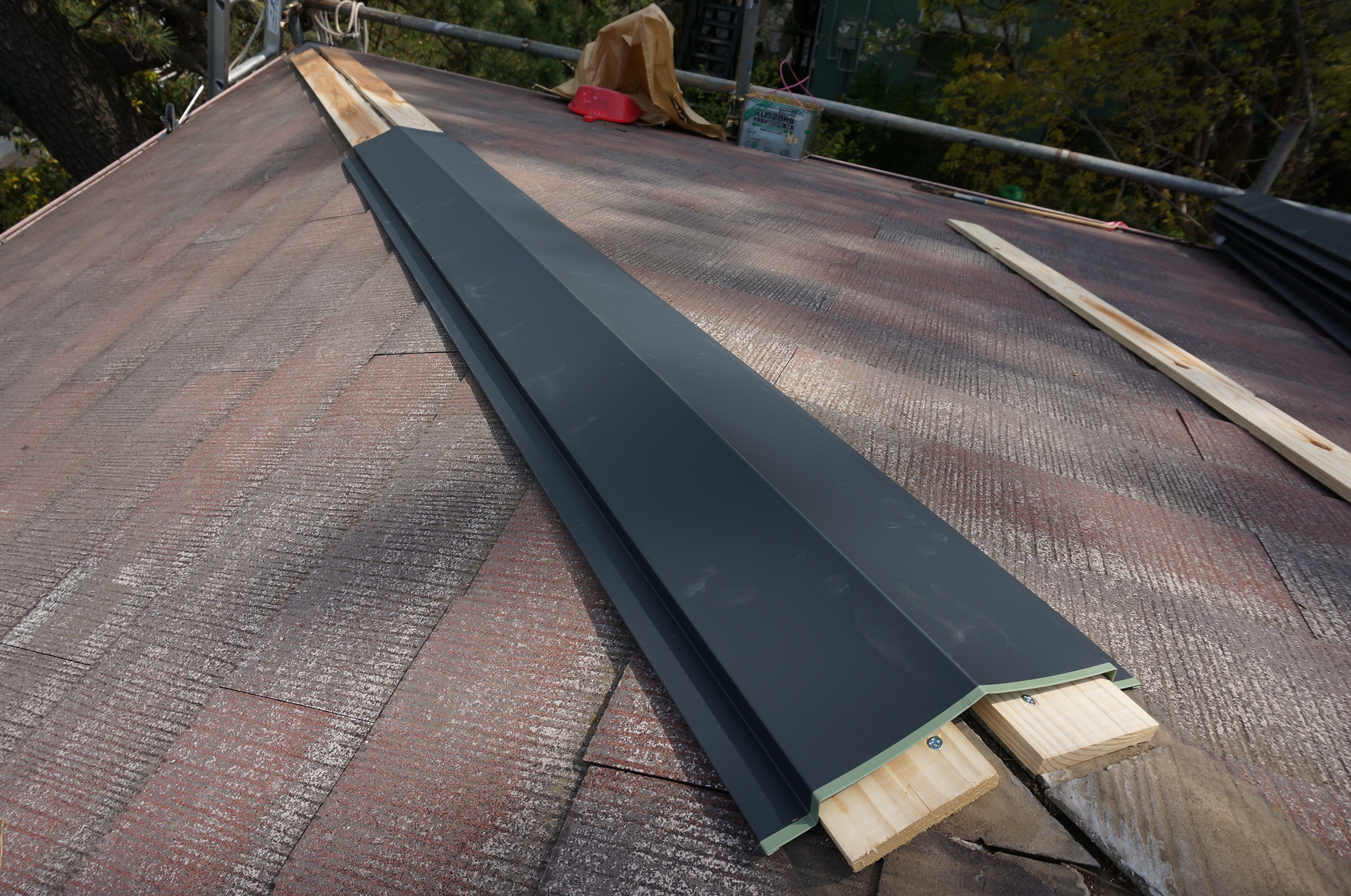 屋根塗装前に棟板金と貫板の交換を実施。