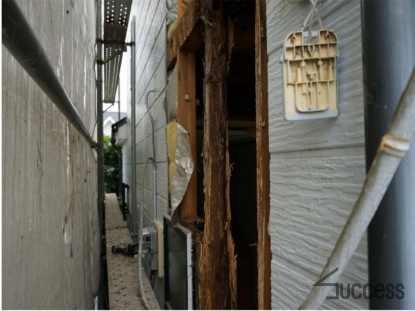 シロアリ被害で柱の太さが半分程度になってしまっているのが確認出来ます。