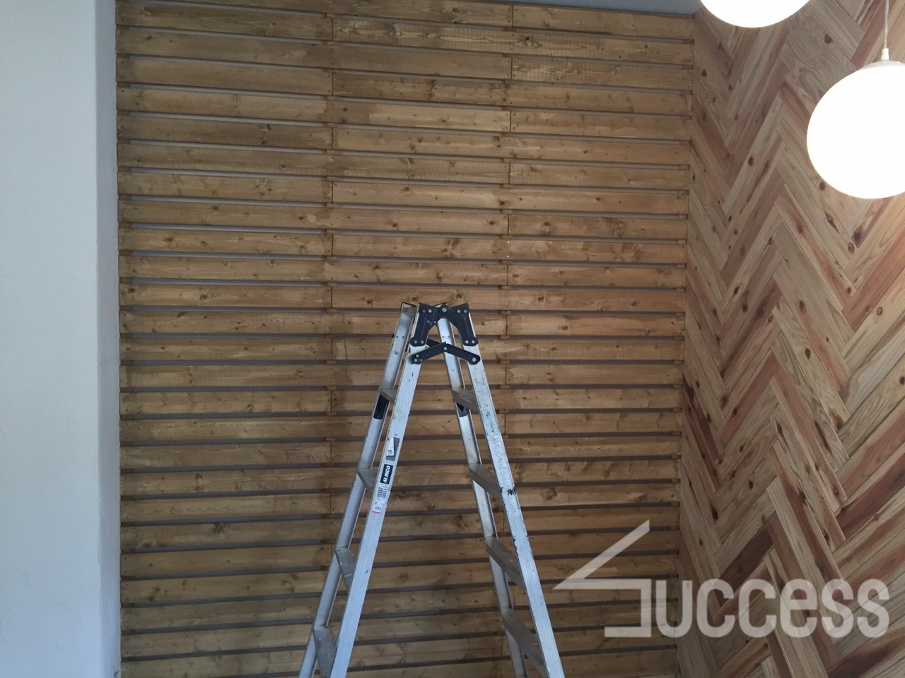 ガバ材はステイン塗料で濃い目の色に着色します。