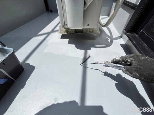 防水層を守る為にトップコートを塗装しますが、トップコートの初期劣化を