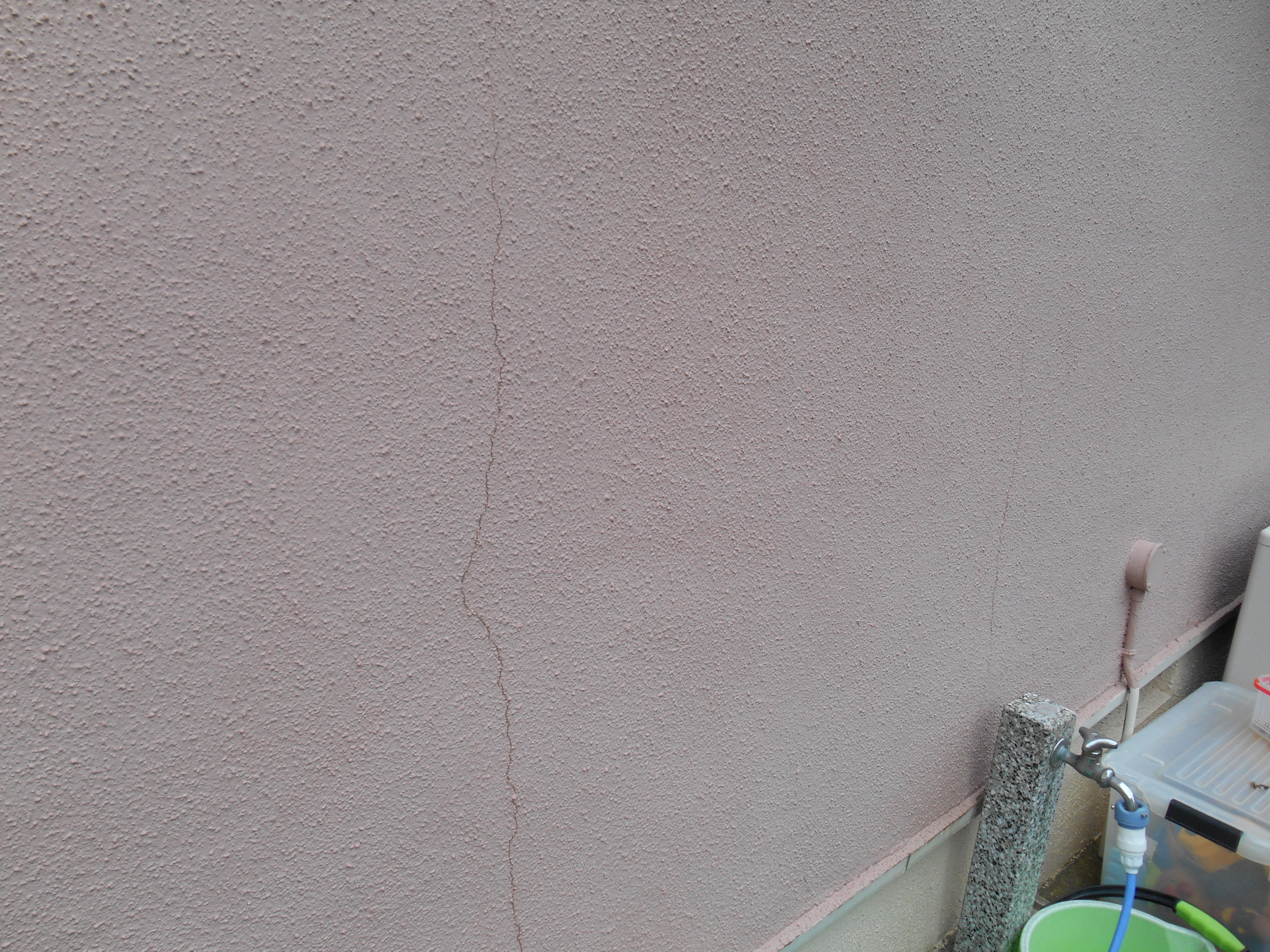O様邸では経年劣化によるクラックがよく目立っていました。